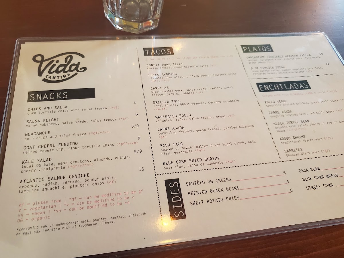 We made a quick stop at Vida Cantina in New Hampshire, and it turned out to be a delicious experience. I had the fish tacos, which were fantastic—the fish tasted incredibly fresh and flavorful.My husband tried the birria tacos, and while he noted they were different from what he expected, he found them to be very good as well.Overall, Vida Cantina provided a delightful meal that exceeded our expectations, making it a worthwhile stop for anyone looking for tasty and fresh Mexican cuisine.